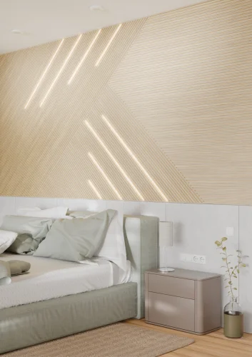 La linea Moove rivoluziona il concetto di rivestimento murale, valorizzando le pareti con texture vivaci ed eleganti. Questi moduli permettono di giocare con volumi e ombre, offrendo inoltre la possibilità di integrare sistemi di illuminazione LED per creare atmosfere uniche e personalizzate, perfette per chi desidera un ambiente dal carattere deciso.